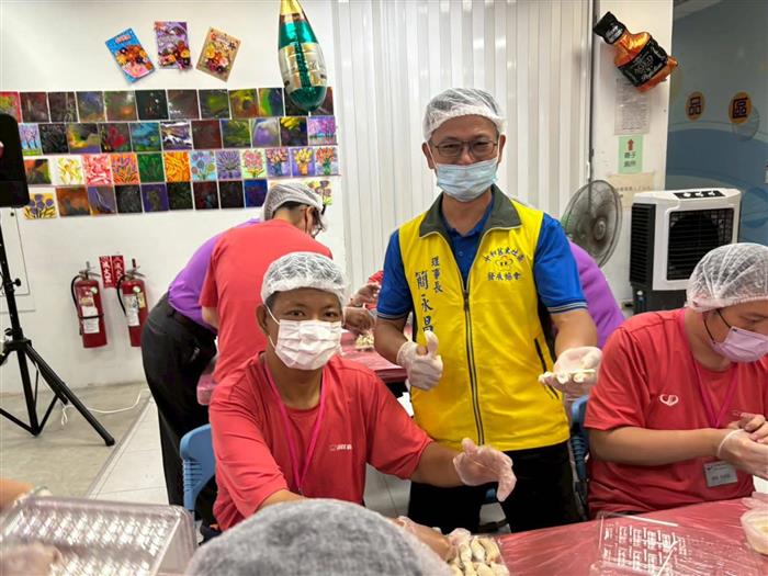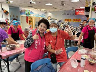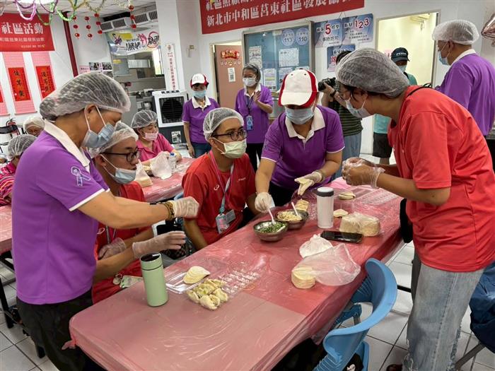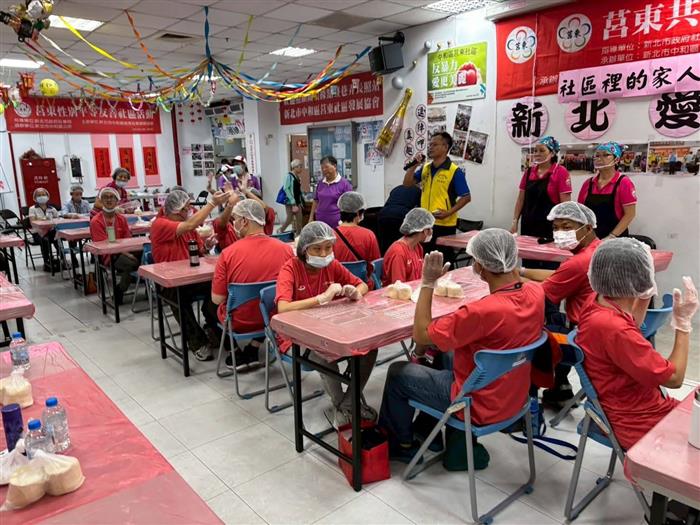 中和民德日照中心學員與老師一起到中和莒東社區與民眾開心一起互動包水餃